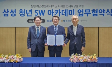삼성은 NH농협은행과 12일 서울 강남구 ‘삼성청년SW아카데미(Samsung Software Academy For Youth, 이하 SSAFY)’ 서울 캠퍼스에서 ‘청년 취업경쟁력 제고 및 디지털 인재육성을 위한 업무 협약’‘을 맺었다.