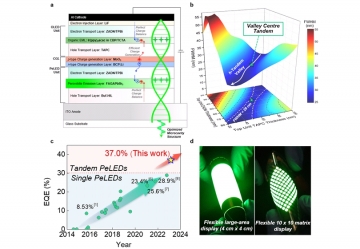 이는 페로브스카이트를 기반으로 탠덤 발광소자를 제작한 세계 최초의 연구결과이며, 연구팀은 광학 시뮬레이션을 통해고효율·고색순도를 동시 구현하는 최적의 소자구조를 찾아‘하이브리드-탠덤 밸리(h-Tandem Valley)’로 명명했다.