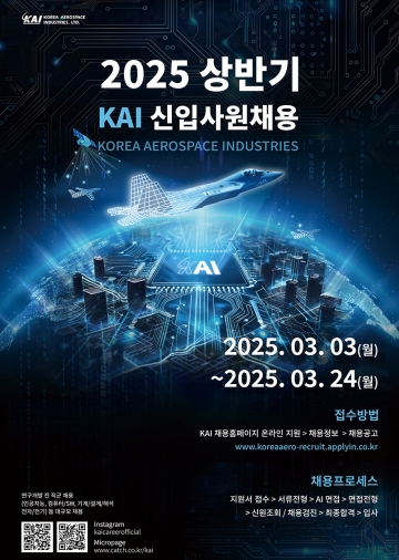 한국항공우주산업(대표 강구영, 이하 KAI)는 미래 항공우주산업의 주역이 될 인재 확보를 위해 2025년 상반기 신입사원 공개채용을 진행하고 있다.