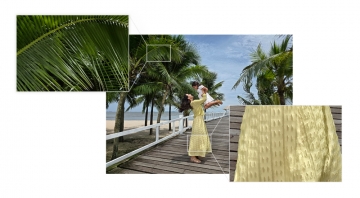 갤럭시 Z 폴드7의 카메라 시스템 중심에는 2억 화소 광각 카메라 센서가 있다. 이는 갤럭시 스마트폰 중 최상위 기술을 탑재한 S25 울트라와 동일한 화소 수를 지닌 센서로, Z 폴드 시리즈 중 가장 높다. 이를 통해 바다 위 물결이나 옷의 패턴 등 피사체의 섬세한 부분까지 더욱 풍부한 질감과 색감으로 표현해 생동감 있는 결과물을 만들어준다.