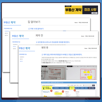 계약 전 임대 물건의 건축물대장, 등기부등본, 납세증명서 등 필수로 확인해야 하는 사항도 안내하고 이를 행정적으로 확인할 수 있는 사이트를 연계제공한다. 계약이 완료되면 해야 할 확정일자 및 전입신고의 방법, 필요시 임대(전세) 보증금 반환 보증가입 방법도 설명하고 있다.